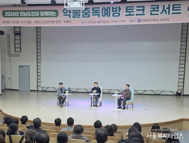 서울복지타임즈 이재연 기자 | 전라남도와 한국마약퇴치운동본부 전남함께한걸음센터는 약물중독예방 토크콘서트를 지난 17일 국립순천대학교에서 열고 마약 중독의 위험성과 회복 지원 방안을 논의했다.