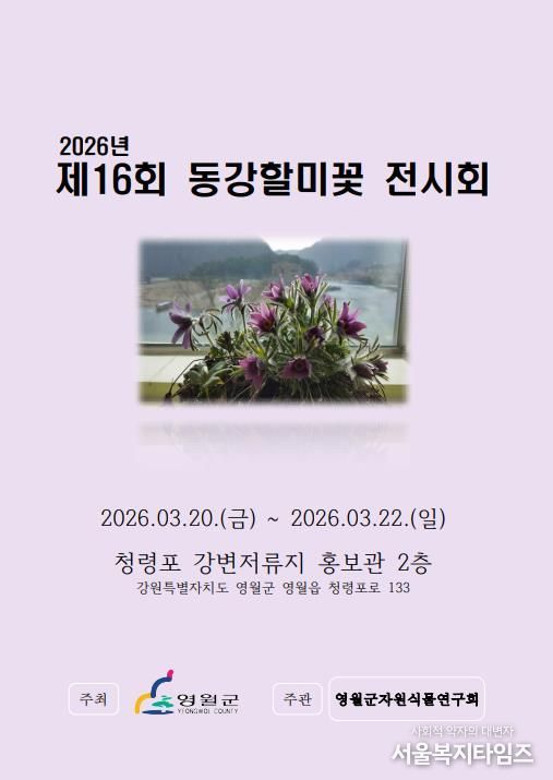 서울복지타임즈 이재연 기자 | 2026년 3월 20일부터 22일까지 영월군 청령포 강변저류지 홍보관에서 제16회 동강할미꽃 전시회를 개최한다.