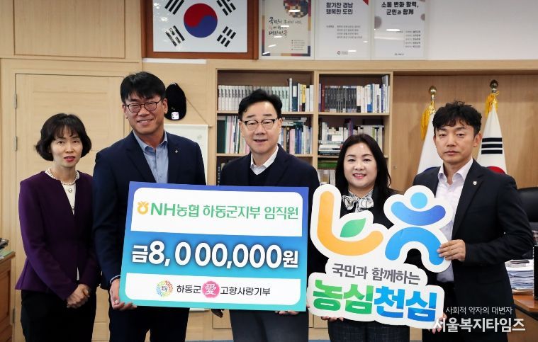 NH농협 하동군지부도 2024년 400만 원, 지난해 560만 원에 이어 올해도 800만 원으로 기부에 참여하며 꾸준함의 미학을 보여줬다.