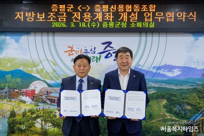 서울복지타임즈 이재연 기자 | 충북 증평군은 18일 군청 소회의실에서 증평신협과 지방보조금 전용계좌 개설을 위한 업무협약을 체결했다고 밝혔다.