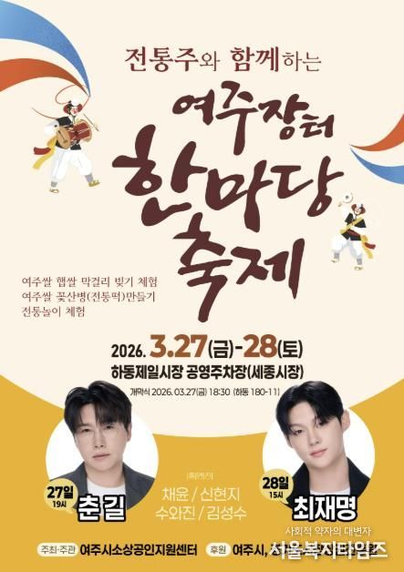 [20260318100439-57476]서울복지타임즈 이재연 기자 | 여주시는 여주시소상공인지원센터 주최⸱주관으로 지역 전통주 문화를 알리고 지역 상권에 활력을 불어넣기 위한 ‘전통주와 함께하는 '여주장터 한마당 축제'’를 개최한다고 밝혔다.