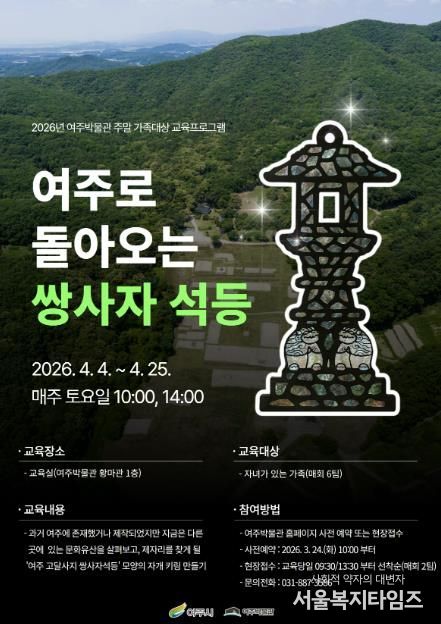 서울복지타임즈 이재연 기자 | 여주시 여주박물관은 오는 4월 주말을 맞아 가족이 함께 지역 문화유산의 가치를 배우고 체험할 수 있는 교육프로그램 '여주로 돌아오는 쌍사자 석등'을 운영한다.