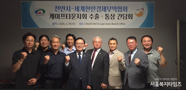 서울복지타임즈 이재연 기자 | 천안시는 지난 18일(현지시각) 남아프리카공화국 케이프타운에서 세계한인경제무역협회(World-OKTA) 케이프타운지회와 수출통상 간담회를 개최했다.