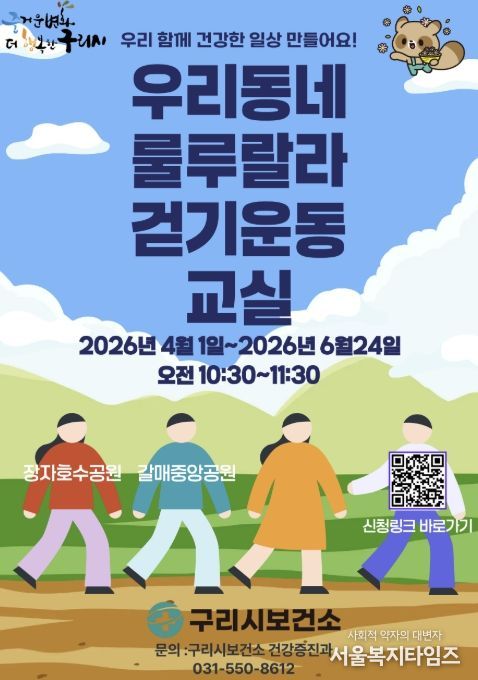 백경현 구리시장은 “걷기운동은 누구나 쉽게 시작할 수 있는 대표적인 신체활동”이라며 “룰루랄라 걷기운동교실을 통해 시민들이 즐겁게 운동하며 건강을 관리할 수 있도록 적극 지원하겠다”고 말했다.