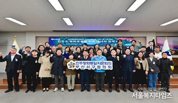 서울복지타임즈 이재연 기자 | 민주평화통일자문회의 부산서구협의회는 3월 5일 오후 6시 서구청 대회의실에서 공한수 구청장, 김혜경 서구의회 의장, 자문위원 등 40여 명이 참석한 가운데 ‘한반도 평화공존을 위한 대내외 정책 추진 방향’을 주제로 ‘2026년 1분기 정기회의’를 개최했다.