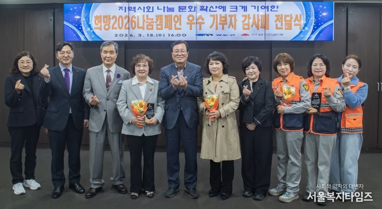 서울복지타임즈 이재연 기자 | 부산 영도구는 부산사회복지공동모금회(회장 이수태)와 공동으로 지난 3월 18일, 구청 대회의실에서 '희망2026 나눔캠페인 우수기부자 감사패 전달식을 개최했다고 밝혔다.