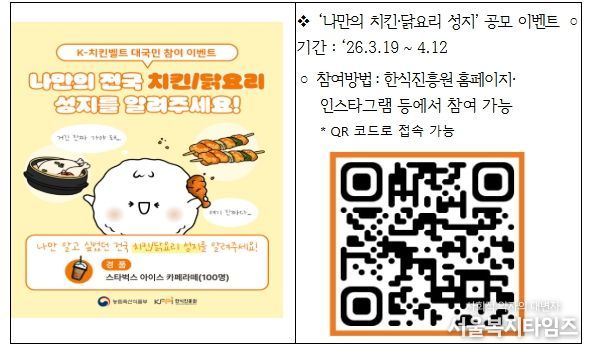 서울복지타임즈 이재연 기자 | 농림축산식품부는 2026년 3월 19일, 한국관광공사 서울센터에서 전 세계인이 가장 사랑하는 한식인 치킨을 필두로 전국의 다양한 닭요리와 지역 관광자원을 결합한 K-치킨벨트(K-미식벨트) 구축 계획을 공식 발표했다.