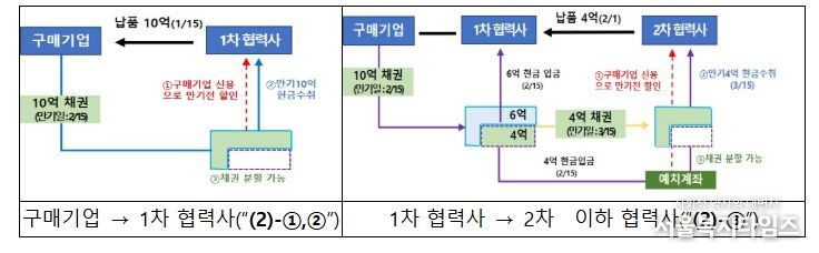 상생결제는 대기업 등 구매기업이 1차 협력사에 지급한 납품대금이 2차 이하 협력사로 안전하게 지급되도록 하는 결제방식으로, 협력사는 결제일에 현금지급을 보장받고, 구매기업의 높은 신용도를 활용해 낮은 금리로 조기 현금화가 가능한 장점도 있다.
