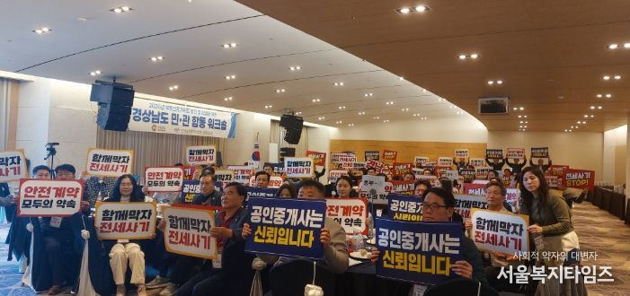 서울복지타임즈 이재연 기자 | 경상남도는 19일 소노캄 거제에서 정부의 전세사기 예방정책에 발맞춰 공인중개사협회 및 담당공무원이 참여하는 민관 합동 워크숍을 통해 정책 홍보 및 현장 확산 방안을 논의했다.