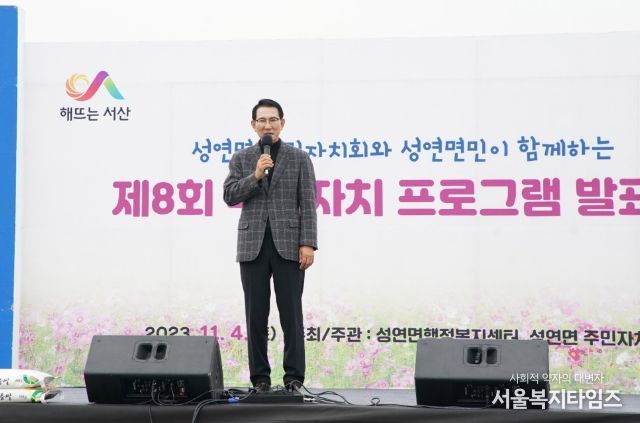 서울복지타임즈 이득형 기자 | 서산시 성연면주민자치회에서는 지난 4일 성연면 다목적행사장(왕정리 691)에서 ‘2023년 농·특산물 직거래장터 및 주민자치 프로그램 발표회’를 성공적으로 개최했다고 밝혔다.