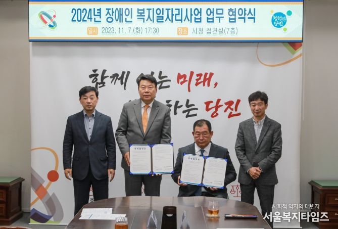 서울복지타임즈 이득형 기자 | 당진시가 (사)한국지체장애인협회 충남협회 당진시지회와 7일 당진시청에서 2024년 장애인 복지 일자리 사업 추진을 위한 업무위탁 협약을 체결했다.