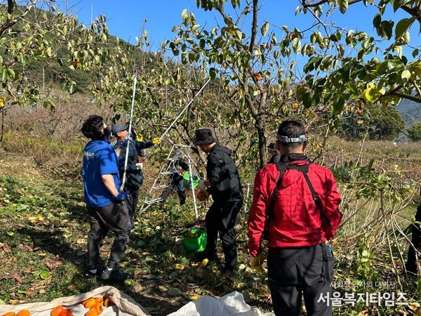서울복지타임즈 이득형 기자 | 하동소방서는 지난 7일 가을 수확철 일손 부족으로 어려움을 겪고 있는 악양면 소재 대봉감 농가를 방문해 감 따기 봉사활동에 참여했다고 8일 밝혔다.