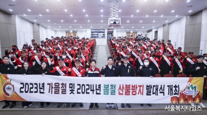 서울복지타임즈 이득형 기자 | 성주군은 11월 8일 2023년 가을철 및 2024년 봄철 산불조심기간을 맞이하여 철저한 산불방지를 위하여 산불전문예방진화대 및 읍면 산불감시원, 산림축산과 직원 110여명이 참석한 산불방지 발대식을 개최했다.
