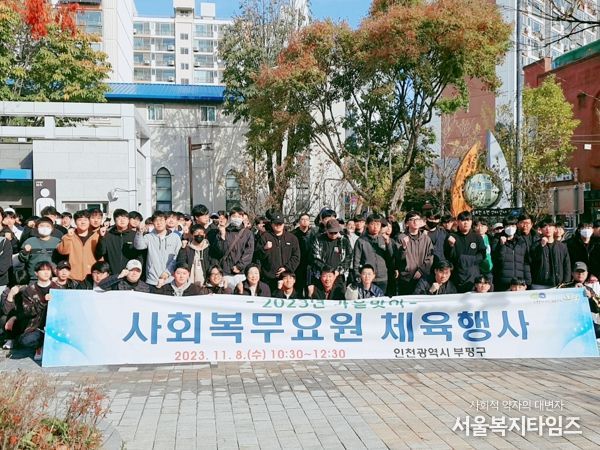 서울복지타임즈 이득형 기자 | 부평구는 8일 굴포천 일대에서 사회복무요원 150여 명이 참석한 가운데 2023년 가을맞이 사회복무요원 체육행사를 실시했다.