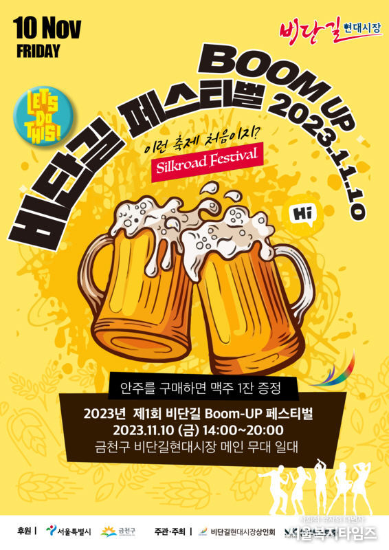 서울복지타임즈 이득형 기자 | 2023년 11월 10일 서울시 금천구 비단길 현대시장에서 제1회 비단길 맥주 축제가 열린다.