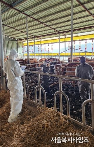 서울복지타임즈 이득형 기자 | 청도군은 ‘LSD긴급백신 접종 명령공고’를 지난 10월 27일 시행하고, 11월 1일부터 7일까지 관내 모든 소 사육 농장(615호, 28,967두)에 백신접종을 조기 완료했다.