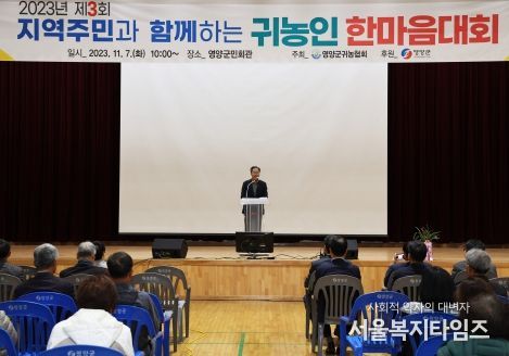 서울복지타임즈 이득형 기자 | 영양군 귀농협회는 11월 7일 오전 10시 영양군민회관에서 오도창 영양군수를 비롯한 내·외빈, 지역주민 그리고 영양군 귀농협회 회원 총 200여명이 참가하는'2023년 제3회 귀농인 한마음대회'를 성황리에 개최했다.