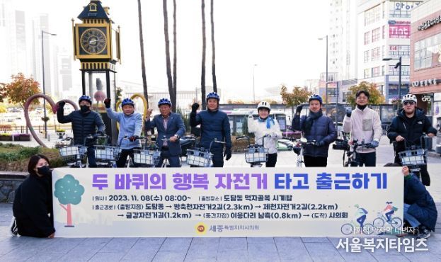서울복지타임즈 이득형 기자 | 세종특별자치시의회는 8일 오전 8시부터 도담동 먹자골목 시계탑에서 ‘두 바퀴의 행복, 자전거 타고 출근하기’ 행사를 진행했다.
