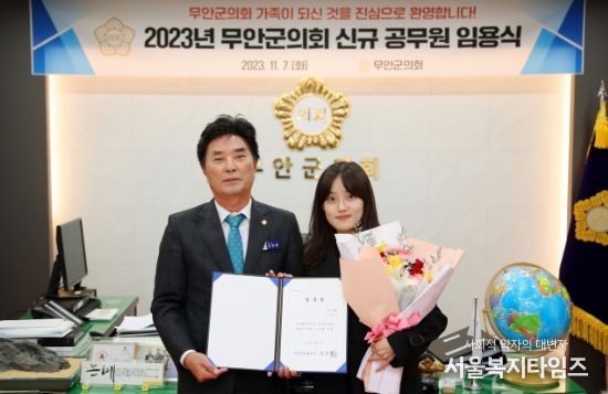 서울복지타임즈 이득형 기자 | 무안군의회는 11월 7일 군의회 의장실에서 신규 임용한 정책지원관 1명(행정9급)에게 임용장을 수여했다.