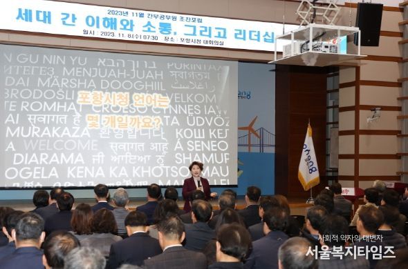 서울복지타임즈 이득형 기자 | 포항시는 8일 시청 대회의실에서 간부공무원 100여 명을 대상으로 지홍선 커뮤니케이션즈 대표를 초청해 ‘세대 간 이해와 소통, 그리고 리더십’을 주제로 특강을 실시했다.