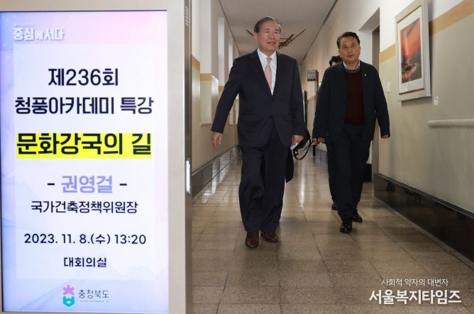 서울복지타임즈 이득형 기자 | 충청북도는 8일 도청 공무원을 대상으로 권영걸 국가건축정책위원장을 초청해 ‘문화강국의 길’이라는 주제로 제236회 청풍아카데미를 개최했다.