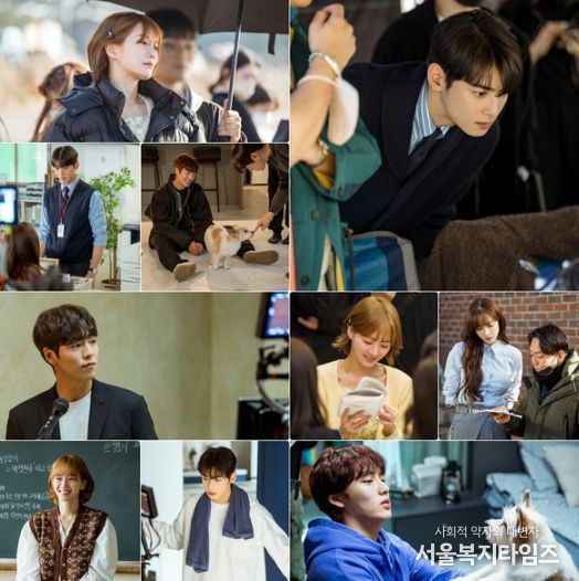 5회 방송을 앞두고 8일(오늘) ‘오늘도 사랑스럽개’ 측은 배우 차은우(진서원 역), 박규영(한해나 역), 이현우(이보겸 역), 윤현수(최율 역), 이서엘(윤채아 역), 연기견(犬) 핀아(개나 역) 등 작품에 대한 열정과 애정으로 뭉친 배우들의 훈훈한 촬영 현장 스틸을 공개했다. 각자의 방식으로 촬영 현장을 불태우고 있는 배우들의 모습이 눈을 뗄 수 없게 만들었다.