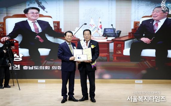 서울복지타임즈 이득형 기자 | 조길연 충청남도의회 의장이 8일 충남도서관 강당에서 열린 제15회 ‘2023년 풀뿌리자치대상’에서 대상을 수상했다.