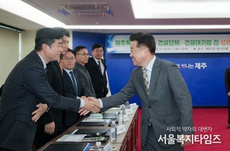 서울복지타임즈 이득형 기자 | 제주특별자치도가 최근 고금리 및 부동산 경기 침체 등으로 어려움을 겪는 제주지역 건설업체의 공사 참여를 확대하고 도외건설시장 동반 진출을 견인하기 위해 건설 대기업과의 상생 협력을 도모한다.