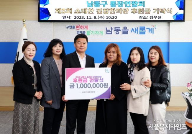 서울복지타임즈 이득형 기자 | 인천시 남동구는 최근 남동구 통장연합회로부터 ‘제5회 남동구 소래찬 김장한마당’의 성공적인 개최를 위한 후원금 100만 원을 전달받았다고 9일 밝혔다.