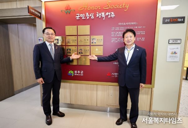 서울복지타임즈 이득형 기자 | 성주군에서는 ‘아너소사이어티’클럽에 現재구성주향우회장 이동환 대표가 가입하여 성주군 7호 아너가 탄생되고 동시에 아너소사이어티 홍보존을 군청1층에 설치하여 제막식을 11월 8일 개최했다.