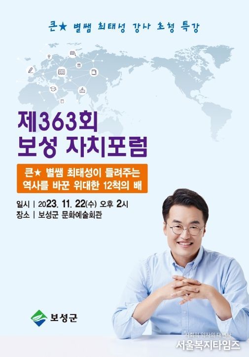 서울복지타임즈 이득형 기자 | 보성군은 오는 22일 오후 2시부터 보성문화예술회관 대공연장에서 ‘큰별샘 최태성 한국사 강사’를 초청해 제363회 보성자치포럼을 개최한다고 밝혔다.