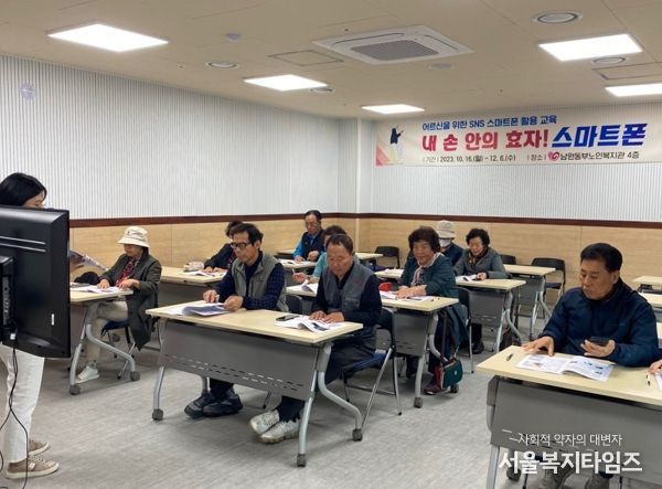 서울복지타임즈 이득형 기자 | 남원동부노인복지관은 2023년 10월부터 12월까지 어르신을 위한 취미·여가지원 프로그램으로 『내 손안의 효자! 스마트폰 활용 교육』, 『하하 호호 언제나 청춘! 웃음치료』 프로그램을 운영해 큰 호응을 얻고 있다.