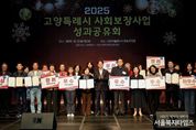 서울복지타임즈 이재연 기자 | 고양시지역사회보장협의체는 지난 11일 고양어울림누리 별모래극장에서 ‘2025년 고양특례시 사회보장사업 성과공유회’를 개최하고, 올 한 해 추진한 사회보장사업의 주요 성과와 우수사례를 시민과 함께 공유했다. 이날 성과공유회에는 이동환 고양특례시장과 김운남 고양특례시의회 의장을 비롯한 지역 국회의원, 도의원, 문화복지위원회 시의원, 사회복지시설 종사자, 동 지역사회보장협의체 위원, 복지담당 공무원, 지역주민 등 300여 명이 참석해 한 해 동안의 민관협력을 통한 사회보장 성과를 공유하고 격려하는 시간을 가졌다. 사회보장사업 성과공유회는 동 지역사회보장협의체, 민관 기관, 복지시설 등 다양한 주체들이 함께 참여해 민관협력의 성과를 확인하고, 향후 다양한 주체 간 연계·협력을 통해 지역사회 복지 기반을 더욱 공고히 하는 행사이다. 이번 행사에는 고양시 사회보장 활성화를 위해 복지현장에서 헌신적으로 활동한 유공자에 대한 고양시장 및 고양시의회 의장의 표창과 함께 2025년 동 행정복지센터 복지업무 평가 결과에서 우수한 성과를 거둔 12개 우수동에 대한 시상이 진행돼 사회보장 현장의 사기를