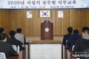 서울복지타임즈 이재연 기자 | 창녕군은 26일 시설직 공무원 60명을 대상으로 2026년 예산실무 및 공사감독 능력 향상을 위한 ‘시설직 공무원 직무교육’을 실시했다. 이번 교육은 예산 편성부터 집행까지 예산실무와 설계도서 작성 및 해석으로 업무 능력을 배양하고 공사감독자의 직무능력 향상으로 견실시공을 도모하기 위해 마련됐다. 주요 내용으로 △예산 편성 및 집행 실무 △건설공사 단계별 감독 역할 및 주의점 △건축물 철거 등 분리 발주 분야 △토목 관련 용어 정리 및 감사지적 사례 등 실무에 필요한 핵심 주제로 구성됐으며, 신기술제품 우선구매율 제고를 위한 설명도 포함됐다. 성낙인 군수는 “이번 직무교육과 건설교통과장 주재 시설직 학습동아리 운영으로 직원의 기술력 강화와 실무 지식 공유, 문제 해결 능력을 높이고, 업무 전문성 확보로 행정 신뢰도와 주민 만족도를 높이겠다”고 말했다.