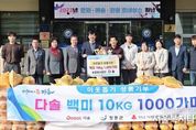 서울복지타임즈 이득형 기자 | ㈜다솔은 지난 7일 저소득층 가정에 전해달라며 쌀 10kg 1,000가마(2,500만원 상당)를 장흥군에 기부했다. ㈜다솔은 장흥바이오식품 산업단지 1호 입주기업으로 2017년부터 장흥군 저소득층을 위해 쌀을 기탁하고 있다. 매년 장흥군인재육성장학회에 장학금 기탁을 이어오는 등 꾸준한 나눔을 실천하고 있다. ㈜다솔 관계자는 “쌀쌀해진 날씨에 따뜻한 이웃의 정을 나눌 수 있어 기쁘다”며 “앞으로도 지역의 어려운 이웃들을 위해 지속적인 나눔활동을 펼치겠다”고 전했다. 김성 장흥군수는 “따뜻한 나눔에 깊이 감사드린다. 기부해주신 물품은 지역의 어려운 이웃들에게 소중히 전달하겠다”고 말했다.