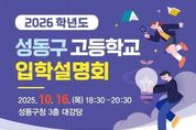 서울복지타임즈 이재연 기자 | 서울 성동구는 오는 10월 16일 오후 6시 30분부터 성동구청 3층 대강당에서 고등학교 진학을 앞둔 학생과 학부모를 대상으로 ‘2026학년도 고등학교 입학설명회’를 개최한다고 밝혔다. 이번 입학설명회는 예비 고등학생과 학부모를 대상으로 고교학점제에 대한 이해를 높이고, 지역 내 일반계 고등학교별 입학 정보를 제공하기 위해 성동구와 성동광진교육지원청(교육장 이긍연)이 공동으로 마련한 자리이다. 설명회는 ▲ 1부 고교 진학 대비 특강(강사: 성북강북교육지원청 송치경 장학사) ▲ 2부 성동구 학교별 입학설명회 및 1:1 상담(경일고, 금호고, 도선고, 무학여고, 성수고, 한대부고)으로 진행된다. 1부 특강은 송치경 장학사가 ‘고교 학점제와 대학 입시의 이해·전략’이라는 주제로 강연을, 2부 학교별 설명회는 각 학교의 입학 담당교사가 학교별 특성, 교육 운영 과정, 진로 진학 전략 등을 안내할 예정이다. 특히 학교별 1:1 상담은 설명회 당일 오후 6시부터 참석자 대상 선착순 현장 접수하며, 학교별 입학 담당교사가 맞춤형 개별 상담으로 진행할 예정이다. 설명회는 9월 26일