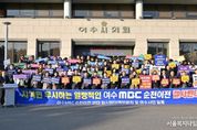 서울복지타임즈 이재연 기자 | 여수MBC 순천이전을 저지하기 위한 여수시민들의 외침이 도심 한가운데 울려 퍼졌다. 15일 여수시에 따르면, 이날 오후 3시 여수시와 여수시의회, 시민사회단체로 구성된 ‘여수MBC 순천이전 반대 범시민대책위원회’는 시의회 청사 1층 공감뜨락에서 ‘여수MBC 지키기! 대시민 토론회 및 결의대회’를 가졌다. 이날 대회는 범대위 공동위원장인 여수시장과 시의장, 범대위 회원을 비롯해 시민과 시의원 등 3백여 명이 참석한 가운데, 1부 대시민토론회와 2부 결의대회 순으로 진행됐다. 이들은 결의문에서 “시민 의견을 배제하고 공론화 과정 없이 일방적으로 추진한 여수MBC 순천이전을 즉각 중단하라”며, “이전 계획을 철회하고 공영방송의 책무를 다하라”고 촉구했다. 정기명 시장도 “여수MBC는 지금이라도 시민들께 사죄하고 대화에 나서라”며, “대화를 통해 시민적 합의만 이뤄진다면 시는 어떠한 제안도 수용할 준비가 되어있는 만큼 이 위기를 함께 헤쳐 나가자”고 밝혔다. 한편, 참석자들은 행사를 통해 결의를 다지고, 여수시의회를 출발해 KB국민은행과 (구)송원백화점, 해양경찰