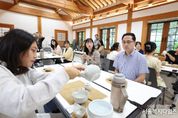 서울복지타임즈 이재연 기자 | 대전 동구는 13일 이사동 유교전통의례관 대전별서에서 관내 어린이집 영유아 부모를 대상으로 전통 다도와 향 체험을 결합한 ‘차향유정(茶香有情) 차와 향기를 나누다’ 프로그램을 운영했다고 밝혔다. 이번 프로그램은 육아로 지친 부모들이 바쁜 일상 속에서 잠시나마 자신을 돌보고 내면의 평온을 되찾을 수 있도록 기획된 힐링 프로그램으로, 총 3회에 걸쳐 운영될 예정이다. 첫 회차인 이날 체험에는 박희조 동구청장을 비롯해 영유아 부모 20여 명이 참여해 전문 강사의 지도 아래 차를 우리고 마시는 전통 다도 예절을 배우고, 전통 향을 활용한 명상 활동을 통해 감각을 깨우며 마음을 다스리는 시간을 가졌다. 특히, 단순한 체험을 넘어 전통문화의 정취를 느끼고 바쁜 육아 생활 속에서 마음의 여유를 되찾는 의미 있는 시간으로 꾸며져 참여자들의 큰 호응을 얻었다. 박희조 동구청장은 “이번 다도체험을 통해 부모님들이 짧지만 깊은 쉼 속에서 마음의 여유를 되찾는 시간이 됐길 바란다”며 “앞으로도 전통문화를 쉽고 친근하게 접할 수 있는 다양한 프로그램을 지속적으로 발굴해 나가겠다”고 말했다.