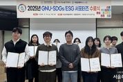서울복지타임즈 이재연 기자 | 경상국립대학교 지속가능발전센터는 2월 11일 칠암캠퍼스에서 ‘2025년 GNU-SDGs/ESG 서포터즈 수료식’을 개최했다. 이날 수료식은 지속가능발전센터 소속 직원들이 참석한 가운데 센터장 인사말을 시작으로 수료증 수여 순으로 진행됐다. 참석자들은 한 해 동안 적극적으로 활동한 서포터즈 학생들의 노고를 격려하고 활동 성과를 공유했다. ‘GNU-SDGs/ESG 서포터즈’는 재학생이 직접 프로그램을 기획·운영하고 성과를 환류하는 학생 주도형 활동으로, 교내외 SDGs(지속가능발전목표) 및 ESG 가치 확산과 실천 문화 정착을 목적으로 운영되고 있다. 2025년 제4기 GNU-SDGs/ESG 서포터즈는 지난 5월 발대식을 시작으로 ▲대동제 SDGs 체험부스 ▲분리수GO! 캠페인 부스 ▲공정무역 인식 제고 캠페인 부스 등 다양한 프로그램을 기획·운영하며 학내 구성원의 참여를 이끌어 냈다. 이로써 일상 속 실천을 기반으로 한 지속가능성 인식 확산에 기여했다. 김영철 경상국립대학교 지속가능발전센터장은 “GNU-SDGs/ESG 서포터즈는 학생들이 주체가 되어 지속가능