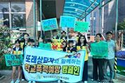 서울복지타임즈 이재연 기자 | 전라남도는 (사)한국숲유치원협회 전남지회와 21일 순천 조례호수공원 원형광장에서 영유아가 숲과 자연의 소중함을 체험하고, 생명 존중 가치와 탄소중립을 실천하는 제1회 전남도 영유아 숲교육대회를 개최했다. 이날 대회에는 (사)한국숲유치원협회 강신영 회장, 배혜자 전남지회장, 전남도 시군지회, 학부모와 유치원생 등 1천여 명이 참석해 뜻깊은 시간을 가졌다. 대회는 ‘탄소중립·생명살림·숲사랑 마당’을 주제로 11개의 다양한 체험 프로그램이 펼쳐졌다. 탄소중립 마당에선 헌책 배지 만들기와 에코백 꾸미기 등 버려진 자원을 재활용해 탄소중립 의미를 배우고, 생명살림 마당에선 친환경 생활용품을 만들며 숲이 주는 자원의 소중함을 느끼는 시간으로 진행됐다. 숲사랑 마당에서는 신나는 숲 놀이, 무당벌레 브로치 만들기 등을 통해 자연 속에서 친구들과 협동하고 놀이를 즐기며 숲과 한층 가까워지는 시간을 보냈다. 행사 마지막에는 ‘숲을 지키는 첫걸음은 나부터’를 다짐하며 참가자 모두가 함께 쓰레기를 줍는 환경정화 캠페인을 펼치며 숲을 사랑하고 자연을 사랑하는 의미를 새겼다. &n