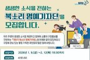 서울복지타임즈 이재연 기자 | 광주광역시 북구는 구정 소식지인 ‘북소리’를 통해 지역의 생생한 소식을 전달하는 명예기자단을 모집한다고 14일 밝혔다. ‘북소리 명예기자단’은 구정 홍보에 주민들의 참여를 활성화하기 위해 지난 2009년 발족한 이후 현재까지 운영되고 있다. 이번 모집에서는 제9기 명예기자단 40여 명을 선발할 계획이다. 지역사회에 관심이 많고 기사 작성 및 인터넷 활용 능력을 갖춘 북구 주민이라면 누구나 신청할 수 있다. 모집 기간은 다음 달 12일까지이며 신청 방법은 지원서와 자유 주제 기사 1개를 작성해 이메일로 제출하면 된다. 지원자들이 제출한 서류를 바탕으로 맞춤법, 문장 표현력, 구정 이해도 및 관심도 등의 기준에 따라 심사한 뒤 2월 말 최종 합격자를 확정될 계획이다. 선발된 명예기자는 오는 3월부터 2년간 활동하며 주민들의 시선에서 지역 소식과 미담 사례 등을 취재해 ‘북소리’에 연 1회 이상 기사를 게재한다. 북구는 명예기자단의 원활한 활동을 위해 편집회의, 워크숍, 교육 등을 지원하고 원고가 채택될 경우 소정의 원고료를 지급할 계획