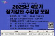 서울복지타임즈 이재연 기자 | 서울 성동구가 2025년 4분기 평생학습관 정기강좌 수강생을 오는 9월 29일(월) 오전 9시부터 성동구청 누리집(홈페이지) 신속예약에서 선착순으로 모집한다. 이번 4분기 정기강좌는 대학연계, 디지털, 인문교양, 문화예술, 생활건강 등 구민 삶의 질을 높일 다양한 프로그램으로 구성됐다. 특히, 장애인 인식개선을 주제로 한 특강을 새롭게 마련해 도슨트와 함께 고난을 이겨낸 예술가들을 조명하고, 전문 영화인과 함께 타인의 시선과 감정을 이해하며 공감하는 특별한 시간을 제공한다. 이와 함께 AI와 스마트폰, 주식인사이트, 시사영어, 노르딕워킹 등 실생활에 도움이 되는 실전 강의부터 인문고전, 클래식, 유네스코 세계유산 여행, 글쓰기 등 풍성한 예술·문화 강좌까지 구민들의 다양한 학습 욕구를 충족시킬 예정이다. 성동구 평생학습관은 분기별로 정기강좌를 운영하며, 매번 높은 관심과 참여를 이끌고 있다. 실제로 지난 3분기 정기강좌에는 14개 강좌에 626명의 수강생이 참여해 평생학습에 대한 뜨거운 열기를 확인할 수 있었다. 정원오 성동구청장은 “지적 성장과 자기계발, 공감 능력까