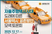 서울복지타임즈 이재연 기자 | 서울특별시의회 교통위원회(위원장 이병윤, 국민의힘, 동대문1)는 2025년 12월 17일 10시, 서울시의회 의원회관 제2대회의실에서 “자율주행택시시대 도래에 따른 서울택시 공존방안 모색 토론회”라는 주제로 토론회를 개최했다. 서울시의회가 주최하고 교통위원회가 주관한 이번 토론회는 이병윤 교통위원장 개회사로 시작됐으며 김동완 서울특별시택시운송사업조합 이사장의 축사와 함께 문성호 서울시 의원이 사회를 맡았다. 자율주행택시에 대한 주제 발제는 한국개발연구원(KDI) 김동영 전문연구원이 진행했으며, 이어지는 토론에서는 이경숙 교통위원회 부위원장이 좌장을 맡아 논의를 이끌었다. 토론자로는 김거중 한국교통연구원 부연구위원, 장정아 아주대학교 연구교수, 이우영 HC택시 대표이사, 박준환 국회입법조사처 팀장, 정준호 서울시 의원, 손형권 택시정책과장이 참여하여 토론이 진행됐다. 이 날 토론회에서는 자율주행 시대의 도래에 발맞춰 택시 산업의 지속 가능한 발전을 위한 준비가 필요하다는 데에 공감대를 형성했다. 아울러 기존 택시 시장과 첨단기술이 상생할 수 있는 자율주행 서비스 도입 방안을 모색하고