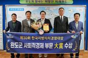 서울복지타임즈 이재연 기자 | 완도군은 14일 서울 공군호텔에서 열린 '제30회 한국지방자치경영대상' 시상식에서 사회적 경제의 저변을 확대하고 주민 참여형 순환 경제 모델을 정착시킨 공로를 인정받아 ‘대상’을 수상했다. 한국지방자치경영대상은 한국공공자치연구원이 주관하고 행정안전부가 후원하는 권위 있는 상으로, 지방자치제 도입 30년을 맞아 각 지자체의 행정 혁신과 정책 성과를 종합적으로 평가해 우수 지자체를 선정·시상하고 있다. 올해는 10여 개 부문에서 전국 지자체들이 치열하게 경쟁했으며, 완도군은 사회적 경제 부문에서 최고의 영예를 안았다. 완도군은 마을 기업과 협력해 유용 패류 자원에 피해를 주는 불가사리를 수거해 비료로 재활용하고 농가에 공급하는 사업을 추진했다. 이 사업은 수산자원 보호와 농업 생산성을 높이는 동시에 지역 내 자원 순환 체계 확립 및 일자리 창출과 공동체 회복에 도움이 됐다. 특히 외부 지원 의존보다 주민이 생활 현장에서 사업을 발굴하고 실행함으로써 주민 참여형 사회문제 해결의 모범 사례로 인정받았다. 신우철 완도군수는 “이번 수상으로 완도군의 위상