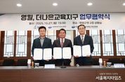 서울복지타임즈 이재연 기자 | 강원특별자치도교육청은 영월군청(군수 최명서), 영월교육지원청과 10월 27일 영월군청에서 ‘영월 더나은교육지구 연장지정 업무협약’을 체결했다. 이번 협약은 2026년부터 4년간 제3기 더나은교육지구 사업을 본격 추진하기 위한 것으로, 세 기관은 ‘꿈을 키우는 학교, 꿈을 펼치는 마을’이라는 영월더나은교육지구사업의 비전 아래 학교와 지역이 함께 성장하는 영월형 교육생태계를 조성하기 위해 매년 4억 원(교육청 2억 원, 군 2억 원)을 지원한다. 영월 더나은교육지구는 다양한 프로젝트를 통해 지역과 함께하는 정책을 실시한다. 우선 지구중점 공동사업인 △‘영월 교사교육과정 자율화 운영 지원’ 사업과 △연합연구회 지원 등을 통해 교사들의 교육과정 설계 및 운영의 전문성 신장을 돕고, 학생의 깊이 있는 학습 구현 및 학습자 맞춤형 교육과정 체제를 구축한다. 또한 교육여건 취약지역 학생에 대한 진로지도 및 학습코칭을 위해 △꿈을 키워가는 진로진학 지원 △실력 쑥쑥 행복학교 운영 등을 운영한다. 나아가 마을과 함께하는 체험중심 진로교육 확대를 위해 △영월愛 두루 배움길