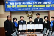 서울복지타임즈 이재연 기자 | 여수시의회는 27일 오후 3시 순천시의회 의장실에서 강형구 순천시의회 의장, 최대원 광양시의회 의장과 함께 '전남·광주 행정통합에 따른 전남동부권(여수·순천·광양) 미래경제동맹 공동선언문'을 발표했다. 이번 공동선언은 전라남도와 광주광역시의 행정통합 논의가 진행되는 가운데, 전남동부권이 국가 산업·에너지·물류 거점으로서 수행해 온 역할과 향후 기능이 통합 과정에서 반드시 반영돼야 한다는 데 3개 시의회 의장이 뜻을 모으며 마련됐다. 3개 시의회 의장은 공동선언을 통해 전남·광주 행정통합이 수도권 일극체제 완화와 국가균형발전을 위한 계기가 돼야 하며, 단순한 행정구역 개편을 넘어 산업·교통·에너지·물류·인재 정책을 연계하는 초광역 경제권 형성으로 이어져야 한다는 점을 강조했다. 아울러 행정통합 이후 정책과 재정, 대규모 국책사업이 광주권과 전남 서부권에 집중될 가능성에 대해 우려를 표하며, 전남동부권의 산업적 위상과 기능이 통합 논의 전반에 균형 있게 반영돼야 한다는 입장을 분명히 했다. 여수·순천·광양 3개 시의회 의장은 공동선언을 통해 ▲전남동부권의 국가산업 거점 기