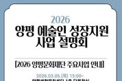서울복지타임즈 이재연 기자 | 양평문화재단은 오는 3월 5일, 양평생활문화센터 1층 다목적실에서 지역 예술인의 지속 가능한 활동을 지원하기 위한 ‘2026 예술인 성장지원사업 설명회’를 개최한다고 밝혔다. 이번 사업은 지역 내 신진·청년 예술인을 중심으로 창작 역량에 비해 부족했던 성장 기회를 제공하고, 기존 지원사업을 일회성 지원으로 그치지 않고 지속적인 지원 체계를 구축하기 위해 마련됐다. 재단은 예술인 스스로 활동할 수 있는 환경을 만들고 지역 예술 생태계를 활성화하는 것을 목표로 하고 있다. 설명회는 크게 세 가지 내용으로 구성된다. 첫째, 2026년 진행 예정인 공모 지원사업 계획을 공유한다. 양평문화재단의 주요 사업인 ‘모든예술31’, ‘물맑은 어울림 음악회’, ‘생활문화지원사업’은 물론 외부 기관의 공모사업 정보도 함께 제공될 예정이다. 둘째, 예술인을 위한 행정 실무 교육이 진행된다. 공모사업의 구조와 신청 절차, 사업계획서 작성 방법, 정산 시 유의사항 등 현장에서 필요한 실무 중심 교육을 통해 예술인의 행정 부담을 완화할 것으로 기대된다. 셋째, 향후 예술인 지원 확대