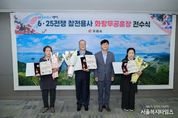 서울복지타임즈 이재연 기자 | 거제시는 지난 27일 6·25전쟁 참전용사 故박석규 상병 자 박상수 님과 故신동개 상병 조카 신복규 님, 故이일윤 하사 자 이정애 님께 화랑무공훈장을 전수했다. 화랑무공훈장은 전시 또는 이에 준하는 비상사태가 발생했을 때 전투에 참가하거나 전투에 준하는 직무를 수행해 무공을 세운 국민에게 수여하는 훈장이다. 故박석규 상병과 故신동개 상병은 1950년 입대, 故이일윤 하사는 1951년 입대하여 각각 강원금화지구와 강릉, 삼척지구 전투 수공으로 당시 그 공을 인정받아 지난 1954년 서훈 대상자로 선정됐으나 훈장을 전달받지 못하다가 국방부의‘6·25전쟁 무공훈장 주인공 찾기’ 사업을 통해 71년 만에 유족에게 전달됐다. 변광용 시장은 “국가를 위해 헌신한 유공자들께 드려야 할 무공훈장을 이제라도 유가족께 전달할 수 있게 되어 다행이며 이에 대한 깊은 존경과 감사의 뜻을 전하고 싶다”고 말했다.