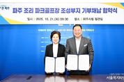 서울복지타임즈 이재연 기자 | 파주시는 지난 21일, 조리 파크골프장 조성 부지 기부채납 협약식을 개최해 파크골프장 조성 사업에 첫발을 내디뎠다. 이날 협약식에는 김경일 파주시장과 토지 기부자인 라보배 씨 등 관계자들이 참석했으며, 조리읍 이장단협의회장, 노인회장, 체육회장, 새마을지도자협의회장, 행복나눔협의체회장 등 지역 주요 단체장이 함께해 지역 발전의 의미를 더했다. 이번 협약은 파주 동부권역 주민의 복리 증진과 생활체육 활성화를 위해 추진된 것으로, 라보배 씨가 11,865㎡ 규모의 부지를 파주시에 무상으로 기부채납함에 따라 조리 파크골프장 조성 사업이 본격화될 예정이다. 파주시는 해당 부지를 활용해 9홀 규모의 산악형 파크골프장을 조성할 계획이며, 2026년 상반기 도시관리계획 결정 및 실시계획인가 절차를 마무리하고, 2026년 하반기 착공 및 2027년 3월 개장을 목표로 사업을 추진하고 있다. 토지 기부자 라보배 씨는 “제가 기부한 토지가 시민들의 건강과 삶의 질을 높이는 공간으로 활용된다는 점이 매우 뜻깊고 기쁘다”라며 “조리 파크골프장이 시민들이 즐겁게 모이고 오래도록 사랑받는 장소