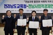 서울복지타임즈 이재연 기자 | 전라남도교육청과 전남사회적경제기업연합회(전남사회적기업협회, 전남마을기업협의회, 전남자활기업협회)는 12월 5일 전라남도교육청에서 ‘건강한 교육환경 조성 및 지역사회와 상생발전을 위한 업무협약’을 체결했다. 양 기관은 이번 협약을 통해 전남교육 발전 및 사회적 가치 실현을 위해 협력을 강화하기로 했다. 이번 협약을 통해 양 기관은 ▲ 전남사회적경제연합회의 생산품 구매 및 판로 확대 지원 ▲ 지역의 미래와 희망을 만드는 사회적경제 교육 위탁 ▲ 창의적 체험활동 및 직업체험 프로그램 운영 ▲ 인적ㆍ물적 자원 활용에 대한 정보 교환 및 연계 등을 상호 협력해 추진키로 했다. 전남교육청은 이번 협약을 계기로 지역에서 활동하는 전남사회적경제연합회가 교육의 동반자로서 학생들이 지역에서 배우고 성장할 수 있는 협력 모델이 되기를 기대한다. 김대중 전남교육감은 “오늘 협약이 전남교육의 경쟁력을 높이는 중요한 계기로 이어지기를 바란다.”면서 “앞으로도 지역과 함께 성장하는 교육, 사람과 사람을 잇는 따뜻한 교육 실현을 위해 사회적경제연합회와 협력을 강화하겠다.”고 말했다.
